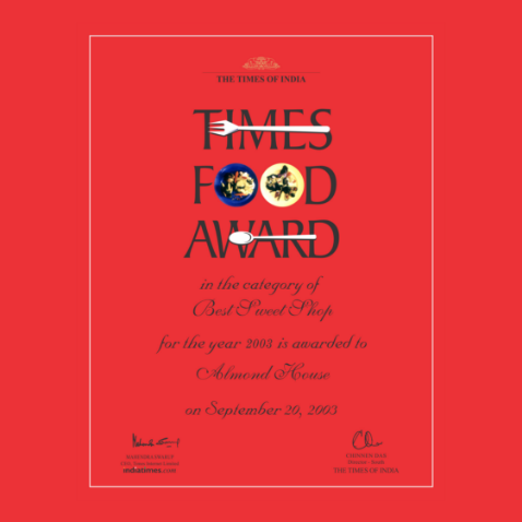 Awarded Best Sweet Shop by Times Food Award, 2003
